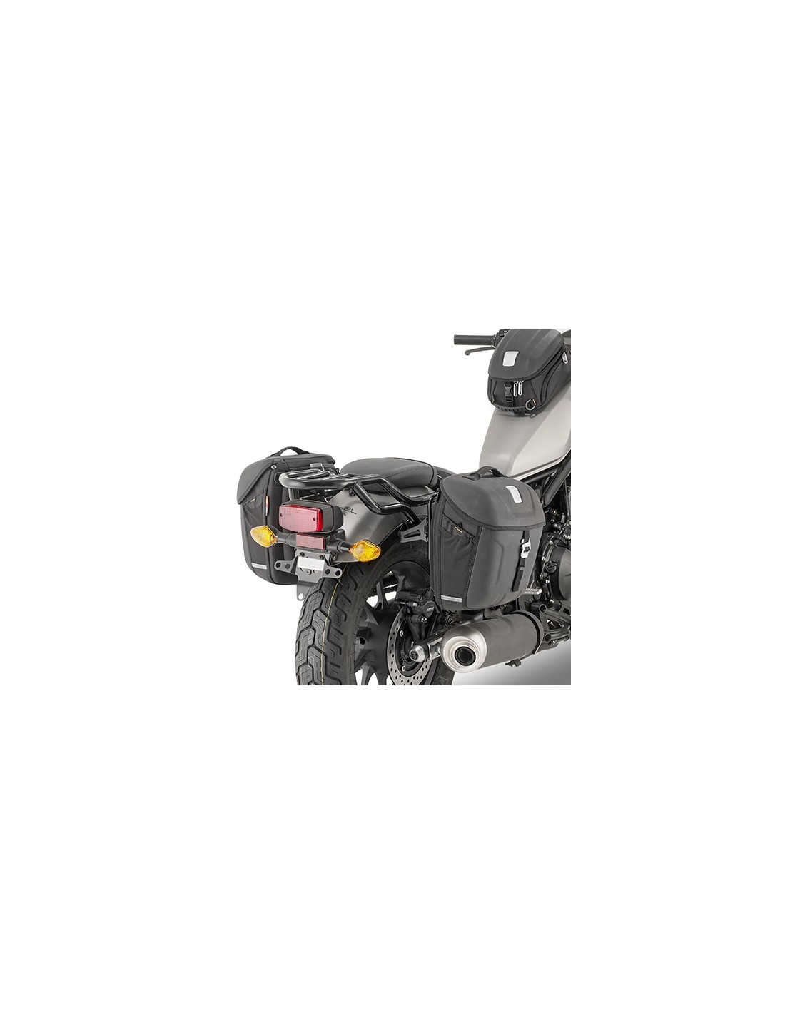 Specific frame for a pair of MT501 side panniers (Metro-T line) or soft side panniers in combination with universal soft side panniers. It is recommended to remove the lower mounting points.