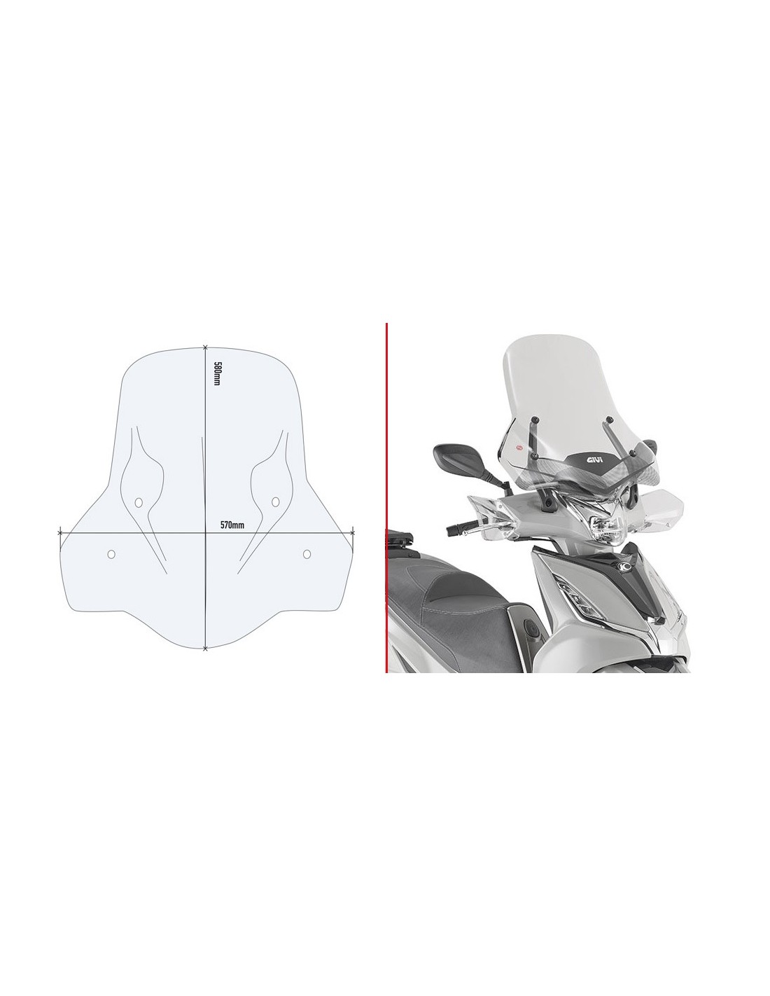 Specific clear windscreen, designed to be mounted on the original windscreen brackets, 58 x 57 cm (height x width), for use with brackets D6114KIT / 15.5 cm taller than the original.