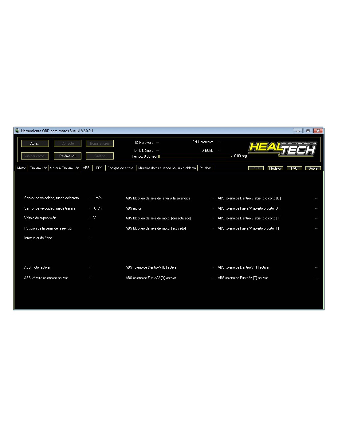 HealTech Suzuki OBD engine data HealTech Suzuki OBD transmission data HealTech Suzuki OBD combined engine and transmission data HealTech Suzuki OBD ABS data HealTech Suzuki OBD EPS data