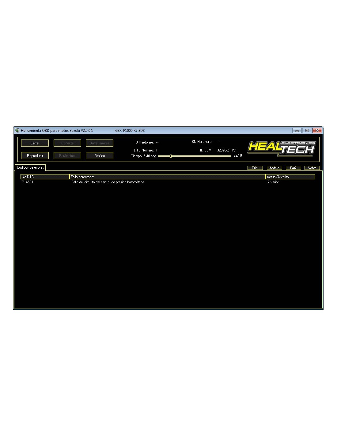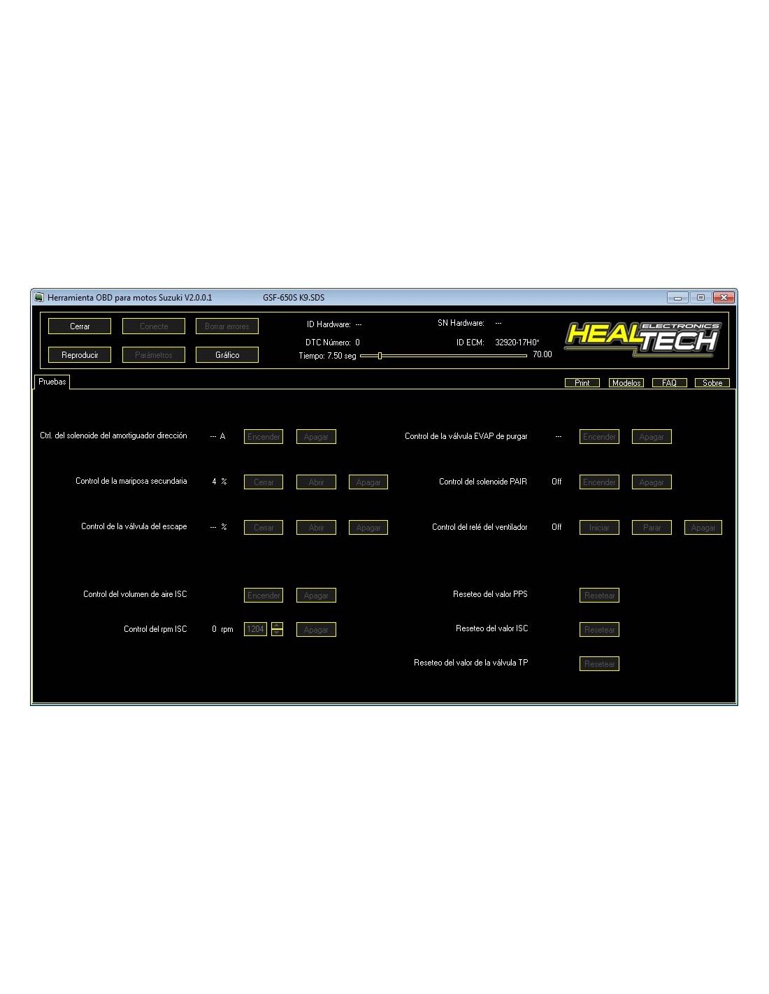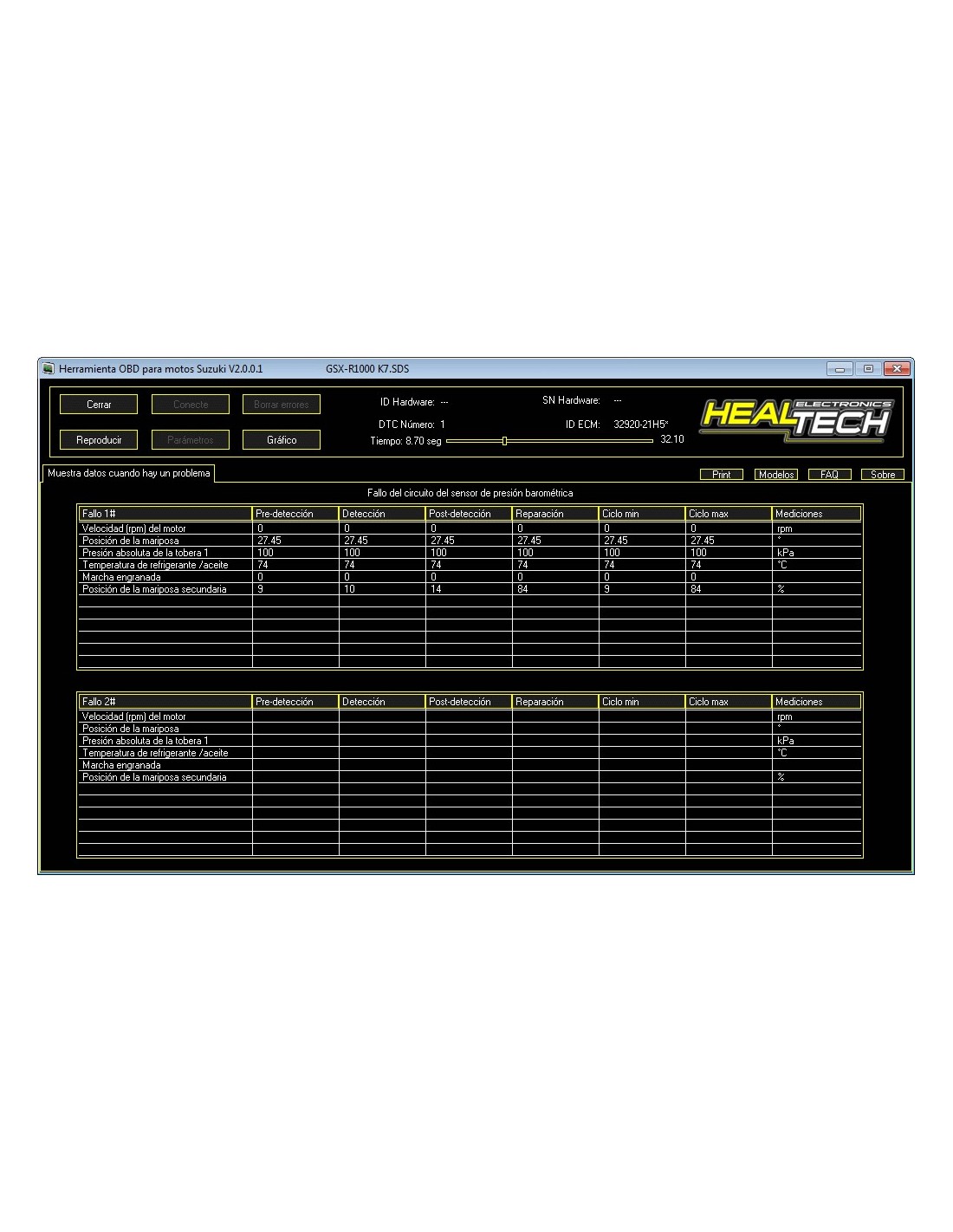 HealTech Suzuki OBD error codes HealTech Suzuki OBD error data HealTech Suzuki OBD activation tests HealTech Suzuki OBD Graphical View HealTech Suzuki OBD Graphical View - available sensors