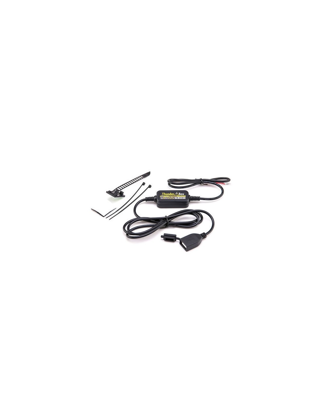 Although the charger can be connected directly to a keyed ignition circuit via a 2A fuse, the power leads are terminated to make an easy connection to a Thunderbox module.