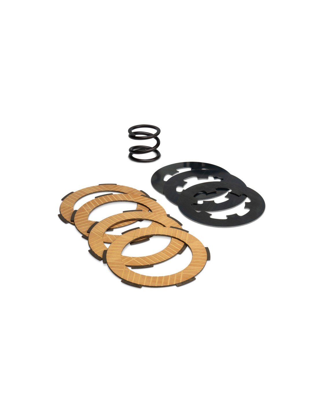 4 steel drive discs coated with high-performance sintered alloy (1.8 mm thick) and 3 steel drive discs (1 thick, 1.5 mm thick, and 2 thick, 0.8 mm thick).