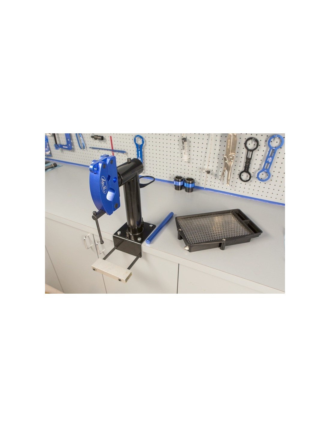 Holds shocks and forks securely while changing oil, changing valves, or replacing seals