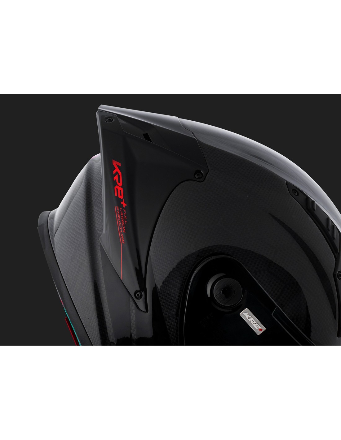 The shell of the KRE+, available in three different sizes, is made of carbon fibre with an optimised interlocking composition for a better impact response.