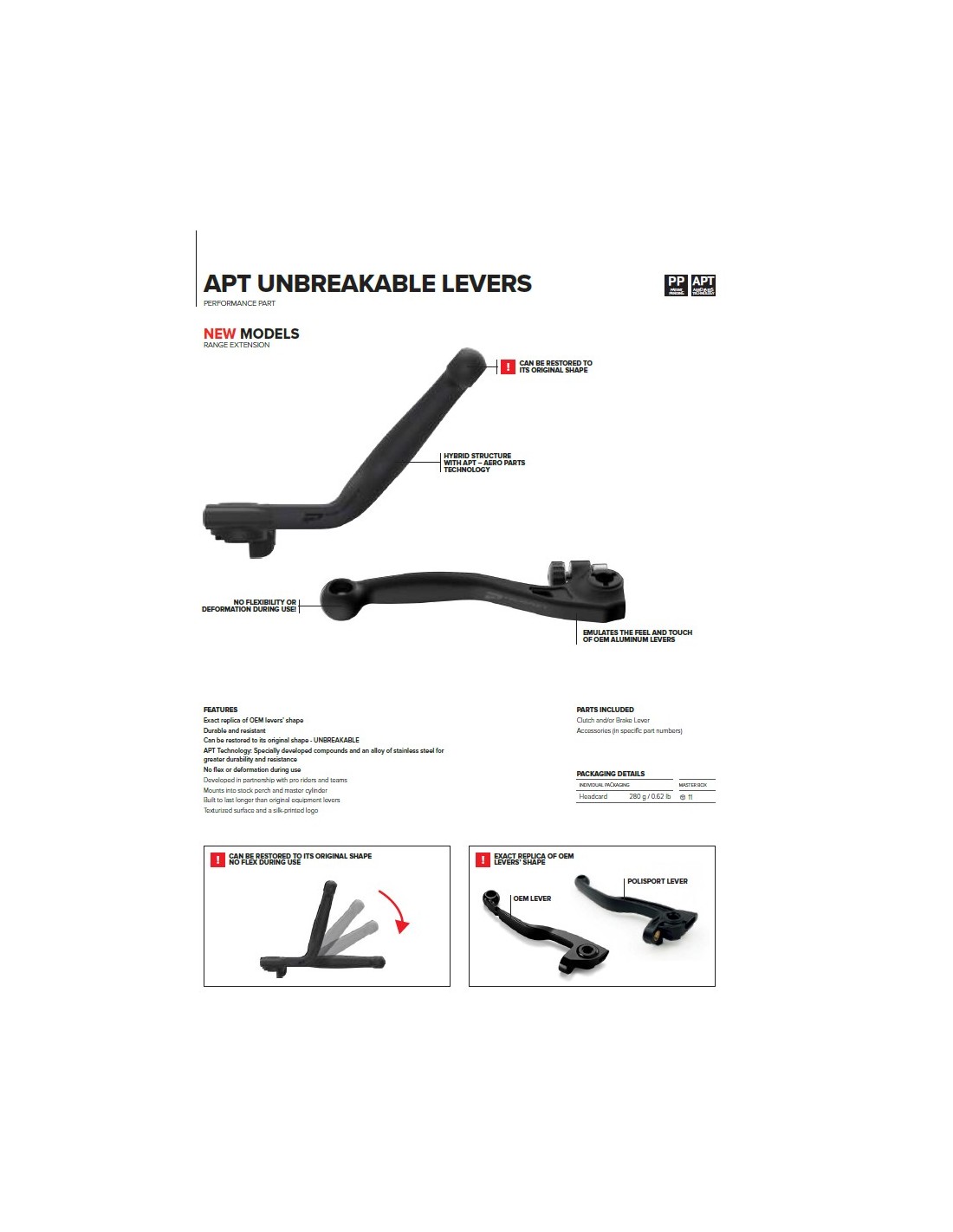 APT is a proprietary compound that emulates the feel and touch of the aluminum levers/ that riders love and are used to/ while making the lever unbreakable and without any flex during use.