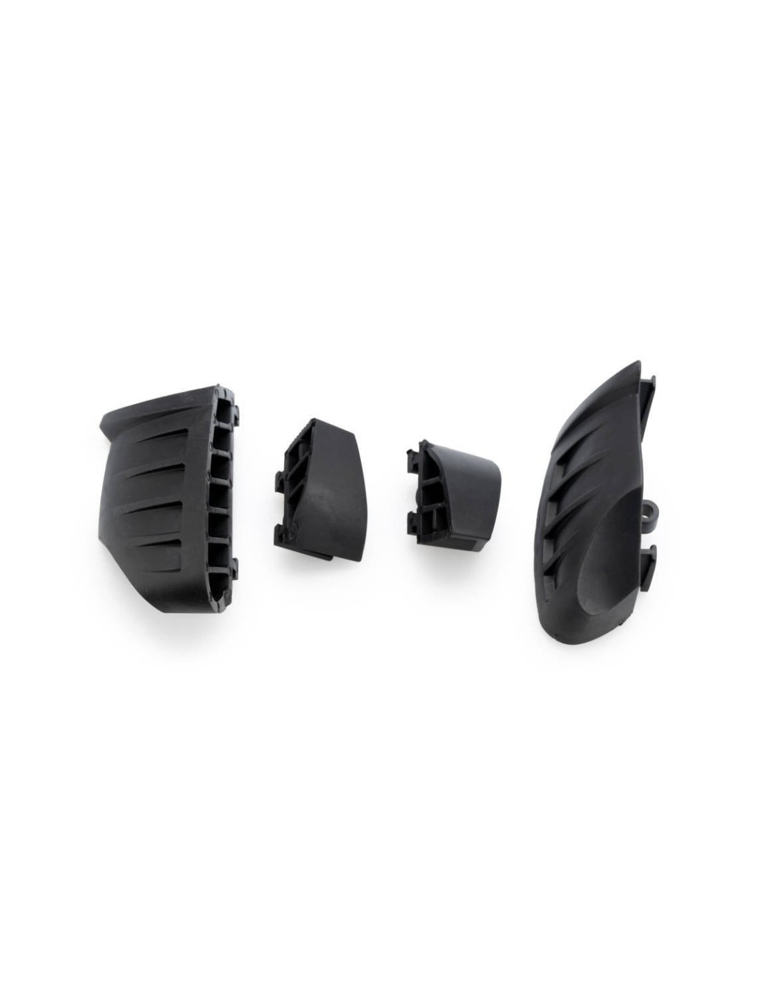 Consists of a central body made of polyamide (impact and abrasion resistant) and two parts (front and rear) made of thermoplastic elastomer to absorb possible impacts with the rider.
