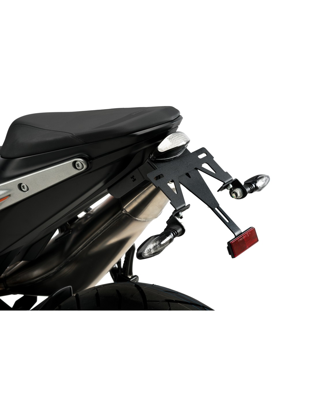 Replace your motorcycle's original license plate holder with the Puig license plate holder, which thanks to its elevated location gives a sporty look to your motorcycle.