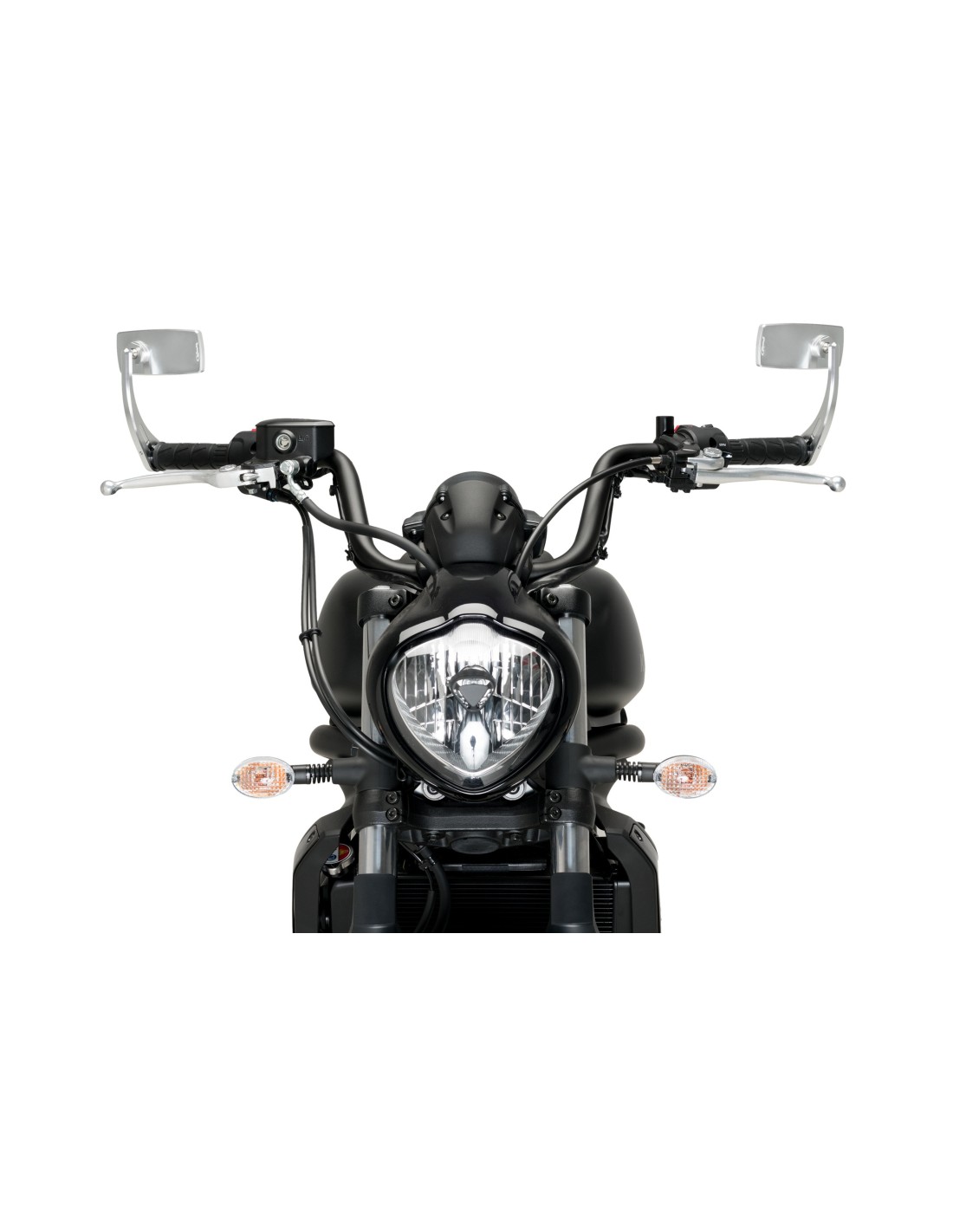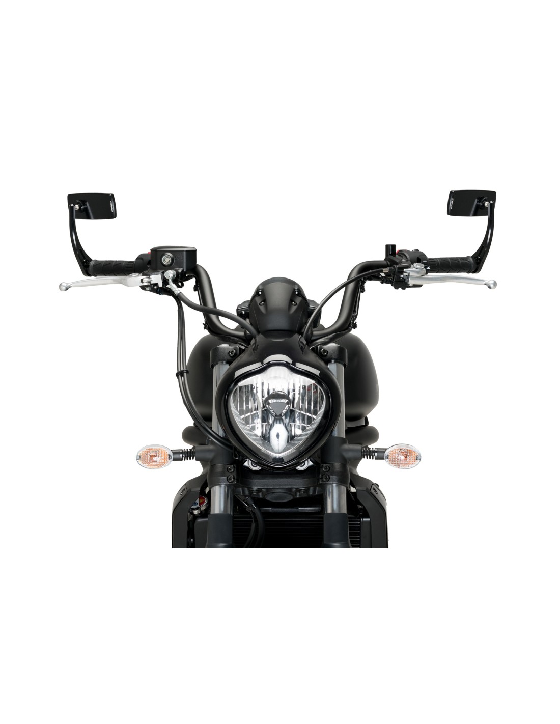The Look mirror is developed in Barcelona by Puig Hi-Tech Parts and meets their quality standards. It is manufactured from a machined and anodised aluminium block in black and silver. The dimensions of the mirror are 115 mm x 51 mm, with a surface that offers good rear visibility.