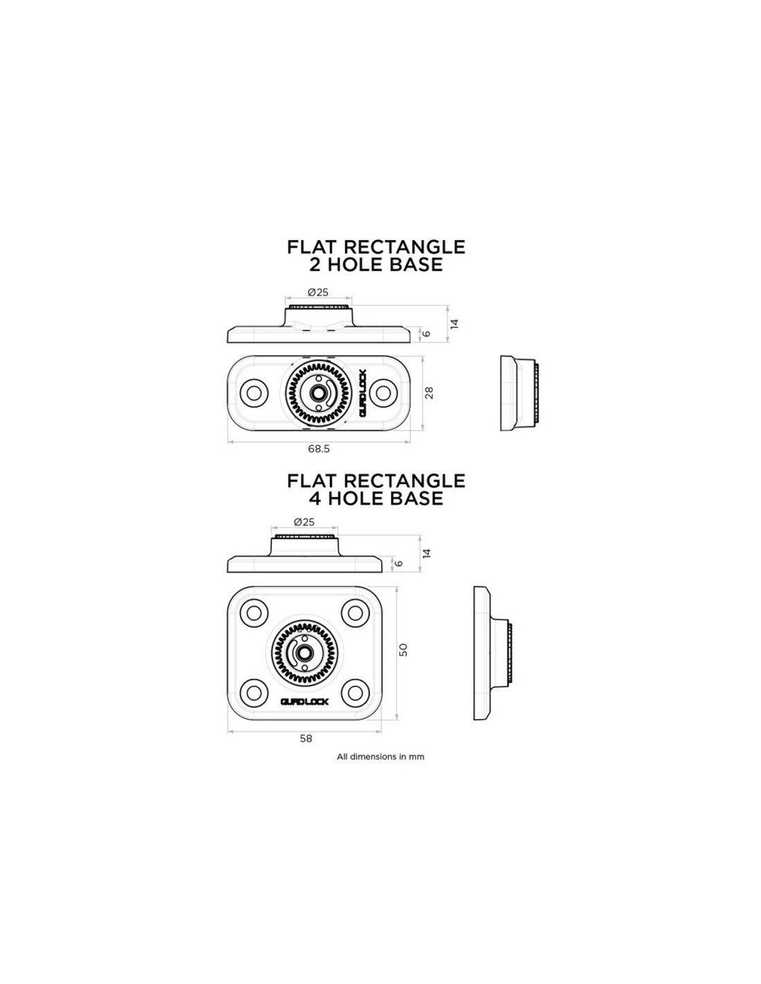 QUAD LOCK RECTANGULAR BASE QLP-360-F2H