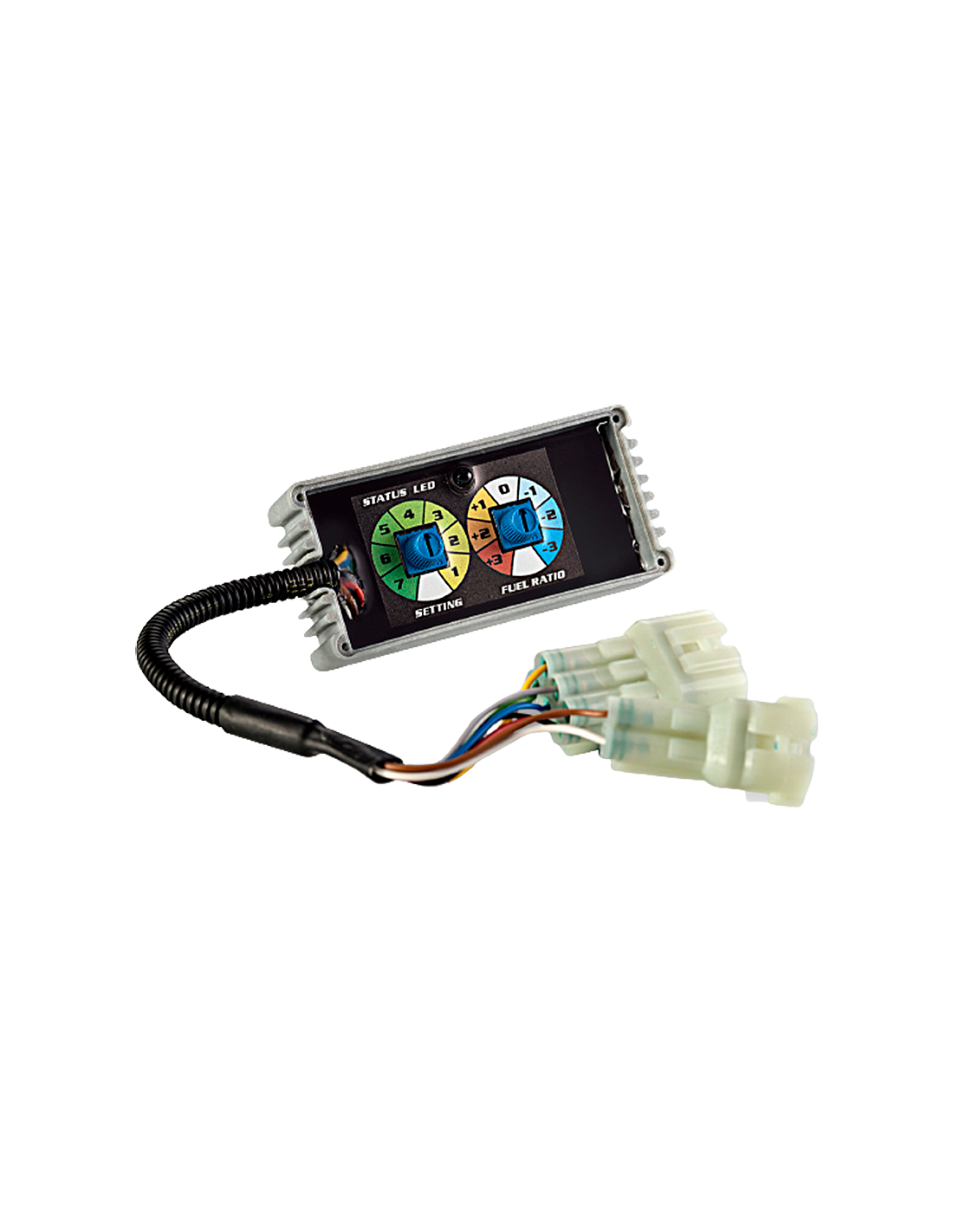 The Rapid Bike EASY additional control unit is equipped with a microprocessor that allows you to operate directly on the lambda probe signal and optimize the air/fuel ratio, improve engine efficiency and eliminate drops in torque delivery, paying particular attention to low and medium speeds.