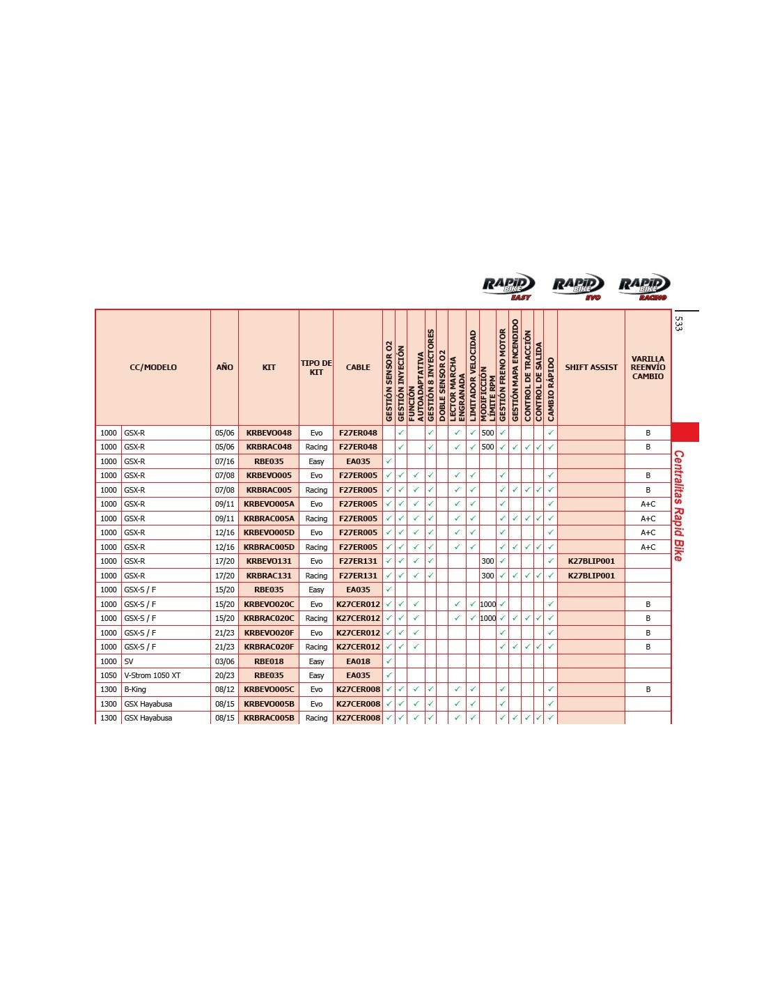 Rapid Bike kits include the control unit and the necessary cable. (1) Except ABS models, (2) Only for Euro3 models, (3) Years 15/16 R model only,