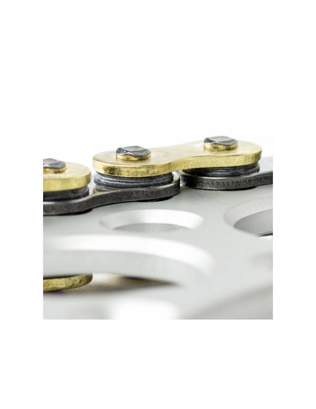 Gold colored side plates help prevent corrosion resistance and longevity. An asset for the MX, SX or enduro.