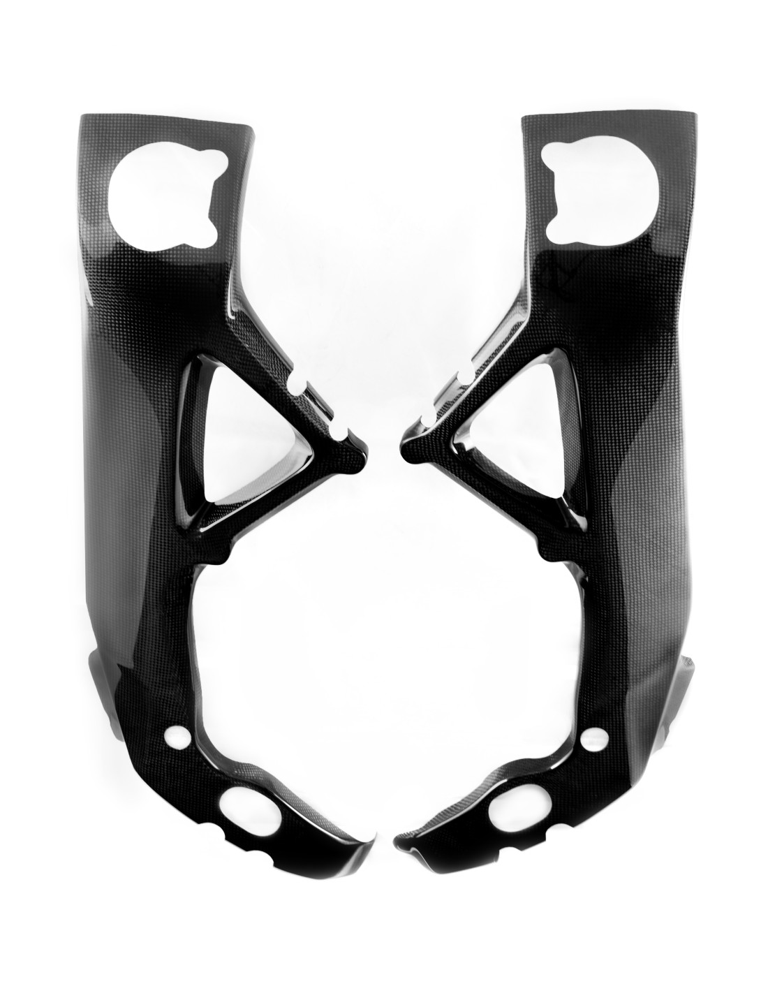 The carbon fiber covers are made of 160 g/m² smooth carbon weave with a high-quality epoxy resin system, reinforced with a 170 g/m² smooth carbon/Kevlar hybrid weave.