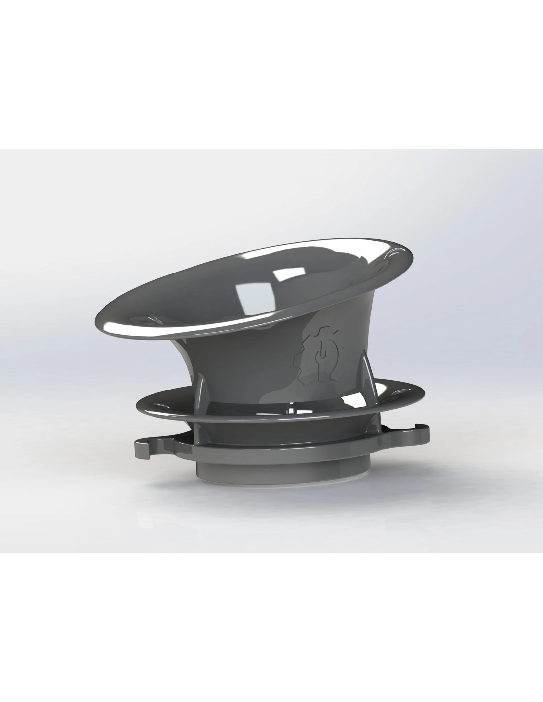 Moves the maximum power zone to the high end of the tachometer (11000 rpm) giving a gain of 8.9cv on a fully stock bike, as opposed to the stock trumpets which deliver maximum power much earlier resulting in a bike with an unusable last 1500 rpm.