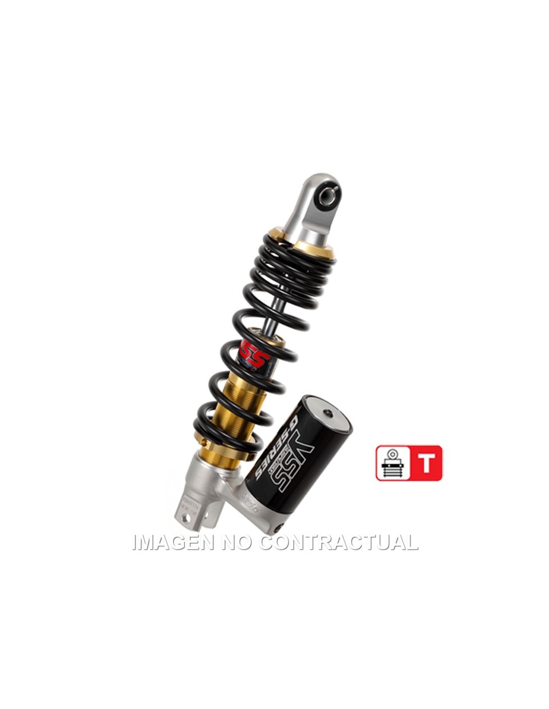 T: Threaded spring preload adjustment.