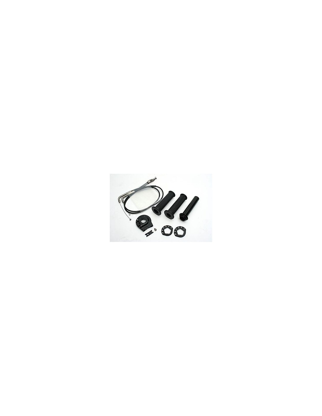Black quick throttle Throttle case in anodized aluminium Grips included Specific cabling for Honda CBR600 RR 05-13 with internal cable in stainless steel Kit includes: Throttle Specific gas cabling 2 roulettes with 50 and 52mm routes Couple of black grips