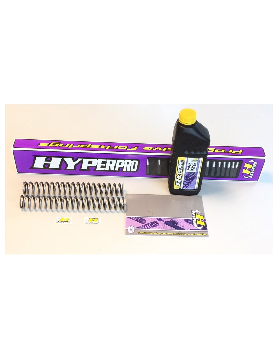High quality springs manufactured by Hyperpro, with free oil. Progressives adapt to the needs of the road. With gift oil.