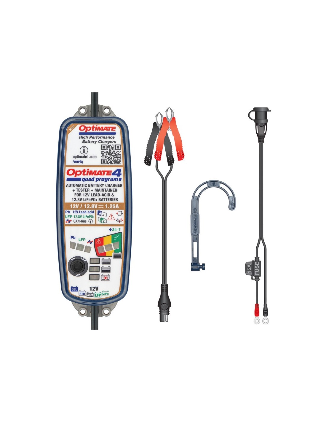 IDEAL FOR: 12V AGM, GEL and STD batteries from 4-60Ah and 12.8/13.2V Lithium (LiFePO4) batteries from 2-15Ah