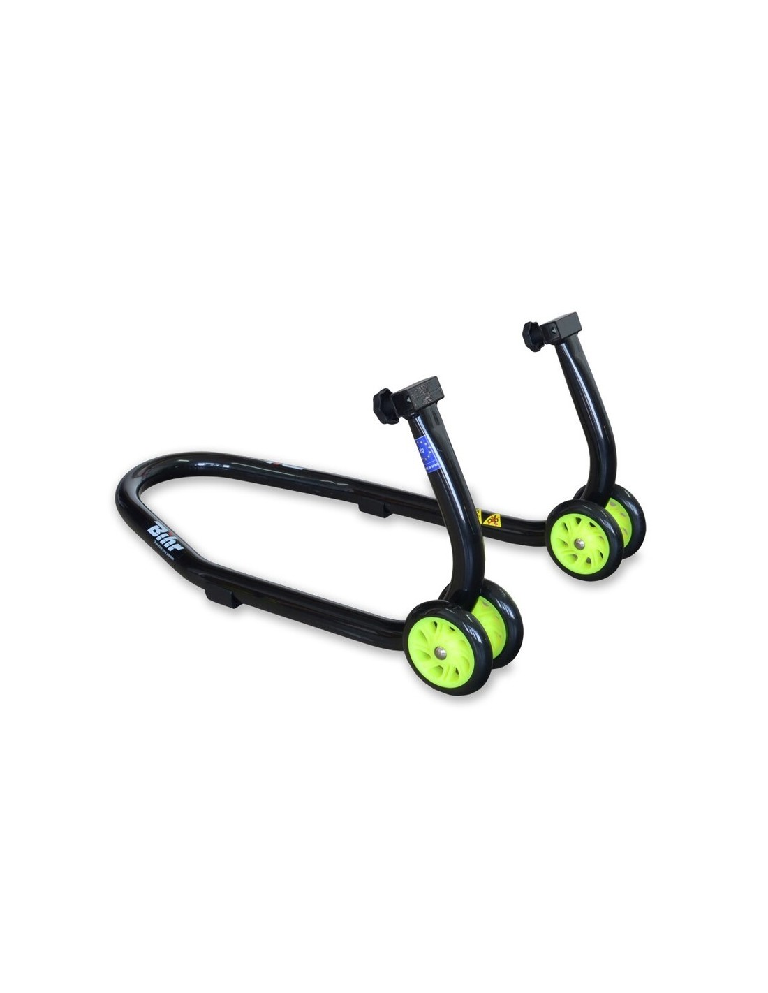 Caballete trasero universal Bihr. Color negro y ruedas fluor