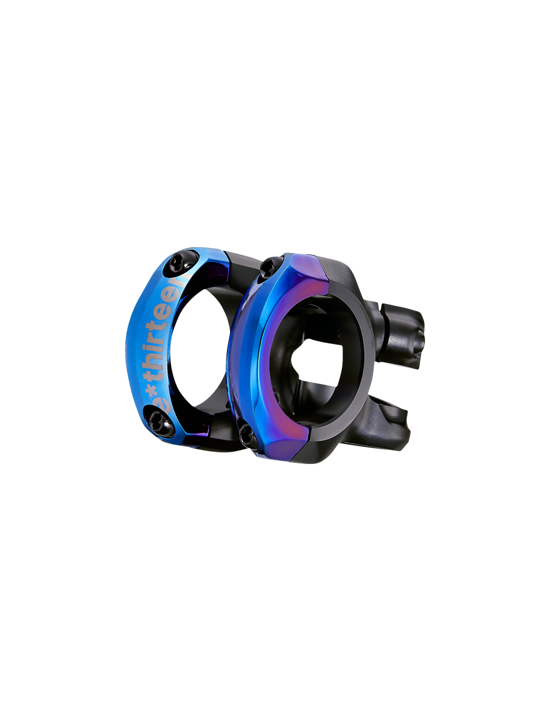 PRODUCT SPEC Clamp: 35mm Bar Clamp Diameter. Color: Black/intergalactic. Features: Water decals, dual finish on the body, polishing on the faceplates, and integrated T25 hardware with rounded heads prevents injury Length: 50mm Material: 7050 Aluminum Rise: 0 Degree Weight: 163g Width:58mm
