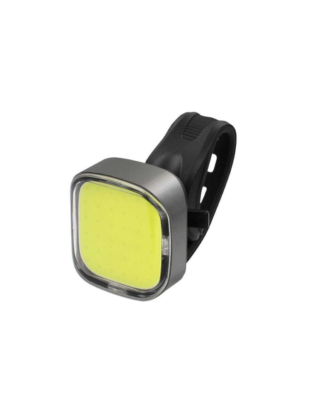 USB Rechargeable Bicycle Safety Front Light: . 36 high brightness LED chips (70 Lumens) . Functions: 100% brightness - 50% brightness - flash - latent flash - day flash - Off . Battery: Lithium polymers / Capacity 3.7V / 300mAh / Charging time 3 hours / Up to 4 hours of autonomy . IPX4 waterproof / Weight 48g / Measures 41x38x23mm