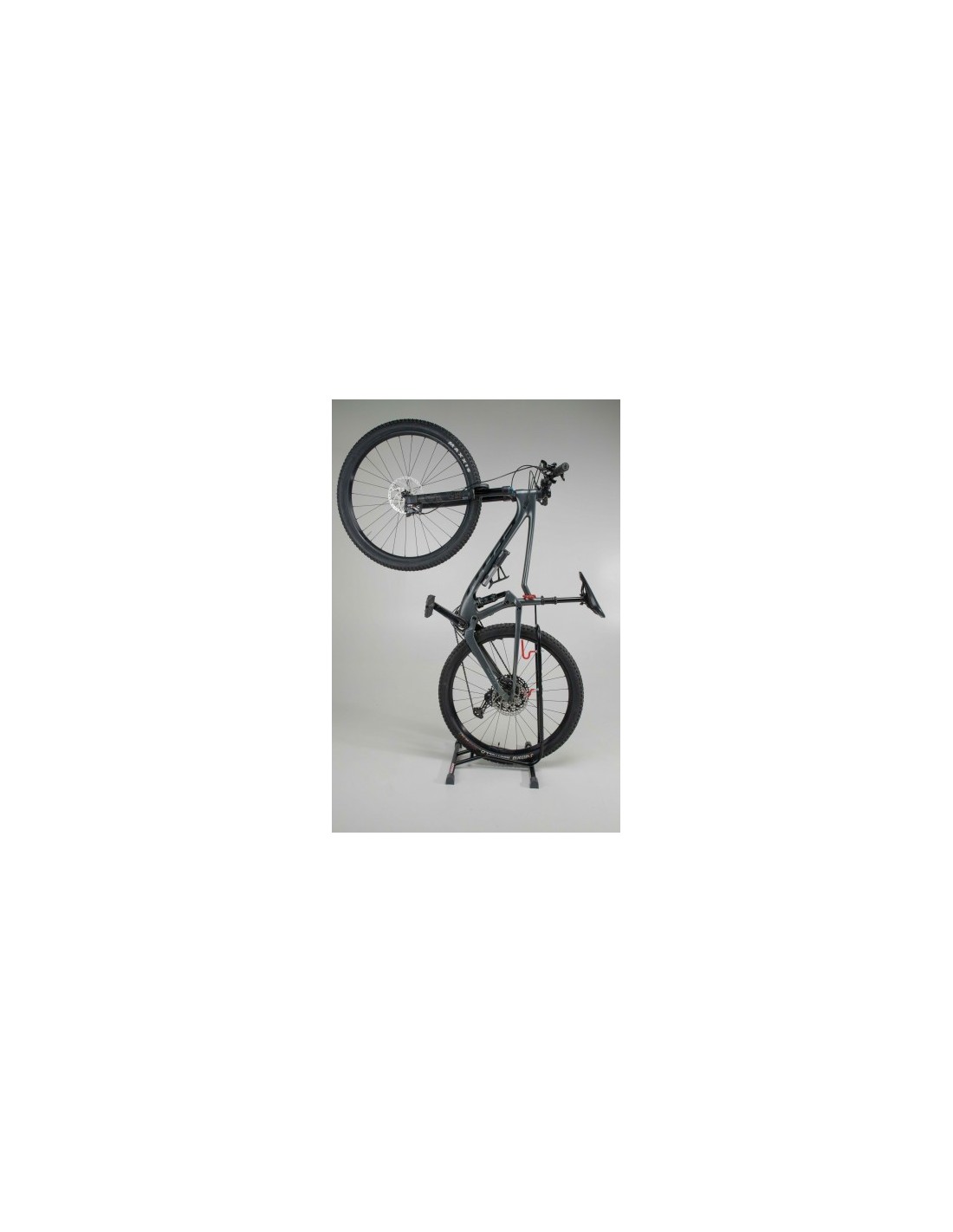 Vertical bike position: Space-saving, free up to 1.1m in the garage, safety and stability in seconds, allowing maintenance of the front wheel