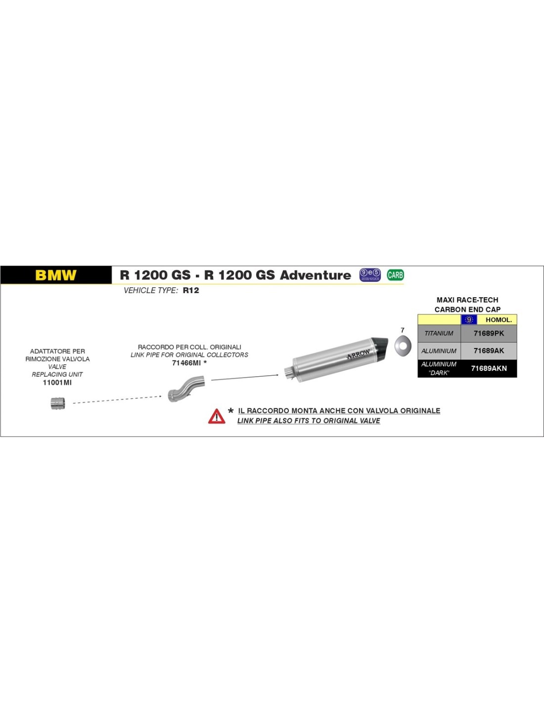 On sale! -18% Delivery subject to manufacturer's deadlines. BMW R 1200 GS - GS Adventure '10/12 ARROW MID PIPE 71466MI / BMW R 1200 GS - GS Adventure '10/12 ARROW 71466MI €76.40 €93.17 Arrow connector for original collectors Add to basket