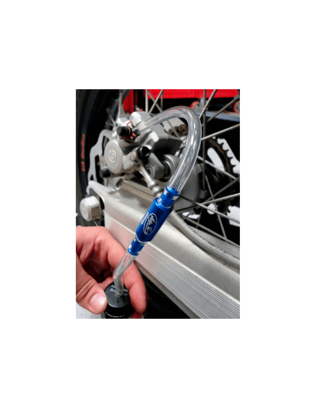 Brake bleeder with check valve. The valve is placed at the outlet of the bleeder to keep the braking system under pressure. It will make bleeding the brakes a piece of cake.