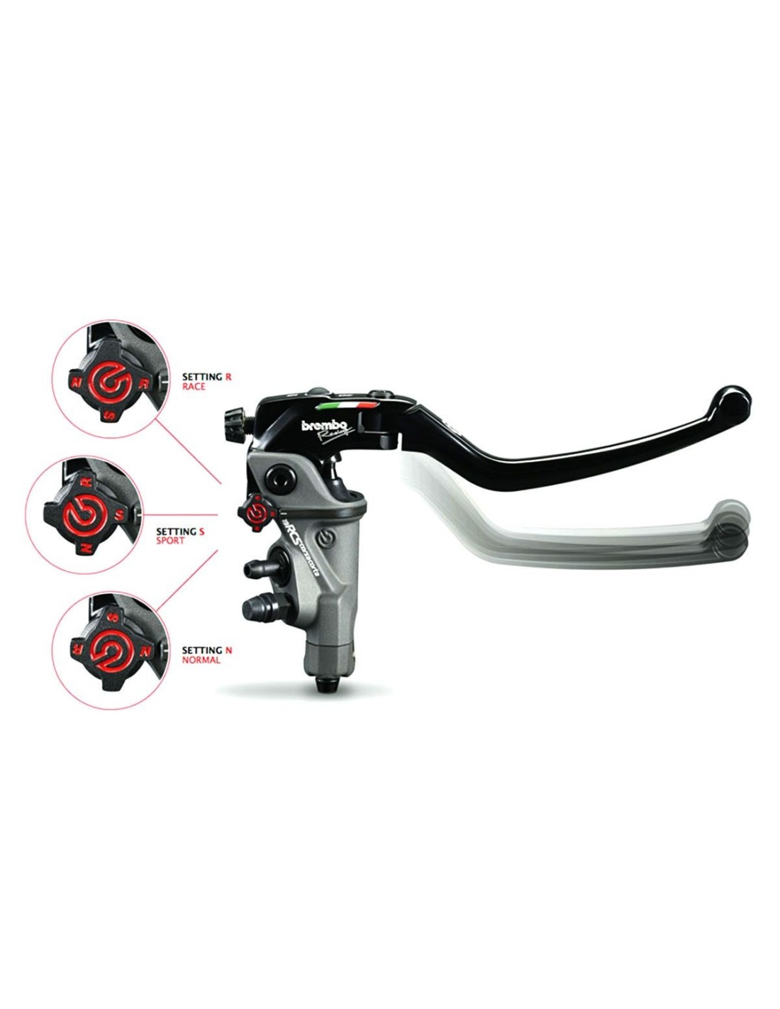 Brembo RCS16 CORSA CORTA RR - Race Replica Radiale Master Cylinder is a further evolution of the radial master cylinder concept, the 16RCS Evolution, the 16RCS with BITE POINT Adjustment.