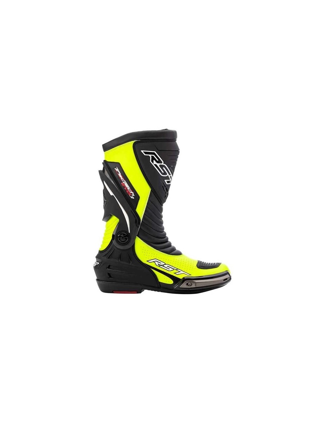 RST TRACTECH EVO III CE Boots Fluor Blue Designed to be comfortable and secure, the TracTech Evo III boot has taken countless hours to develop both on the track and on the road! The boot is CE marked level 2/2/1, one of the highest levels of protection, but it also includes molded TPU heel and shin protection as standard, giving you more protection against impact. The size and position of the shift pad varies depending on the size of the boot, so it is in the right place to protect your boots from wear and tear from the shift pedal. The non-slip multi-density sole and perforated leather ventilation make the boot comfortable both inside and out. This, together with the velcro closure system, allows you to take the boot on and off with minimal effort. PROTECTION CE marking: Level 2/2/1 Heel Protection: Molded thermoplastic polyurethane heel Shin protection: Molded thermoplastic polyurethane shin Ankle protection: TPU MANUFACTURING: Outer base material: Microfiber Ventilation: Perforated leather Closure: zipper and velcro Shift Pad: Yes Boot Slider: Zinc Alloy Midsole: Anti-torsion polycarbonate Insole: Antibacterial gel Sole: Racing sole, non-slip and double density Ankle: Hinged ankle support FEATURES AND ADVANTAGES: Toe cap: Reinforced Cow leather seasonality Summer Removable lining Nope Use Competition Weather Resistant Nope Color Black Homologation CE approval Gender Men Outer Protective Shell Nope sliders Yes - Removable Ankle Reinforcement Yes