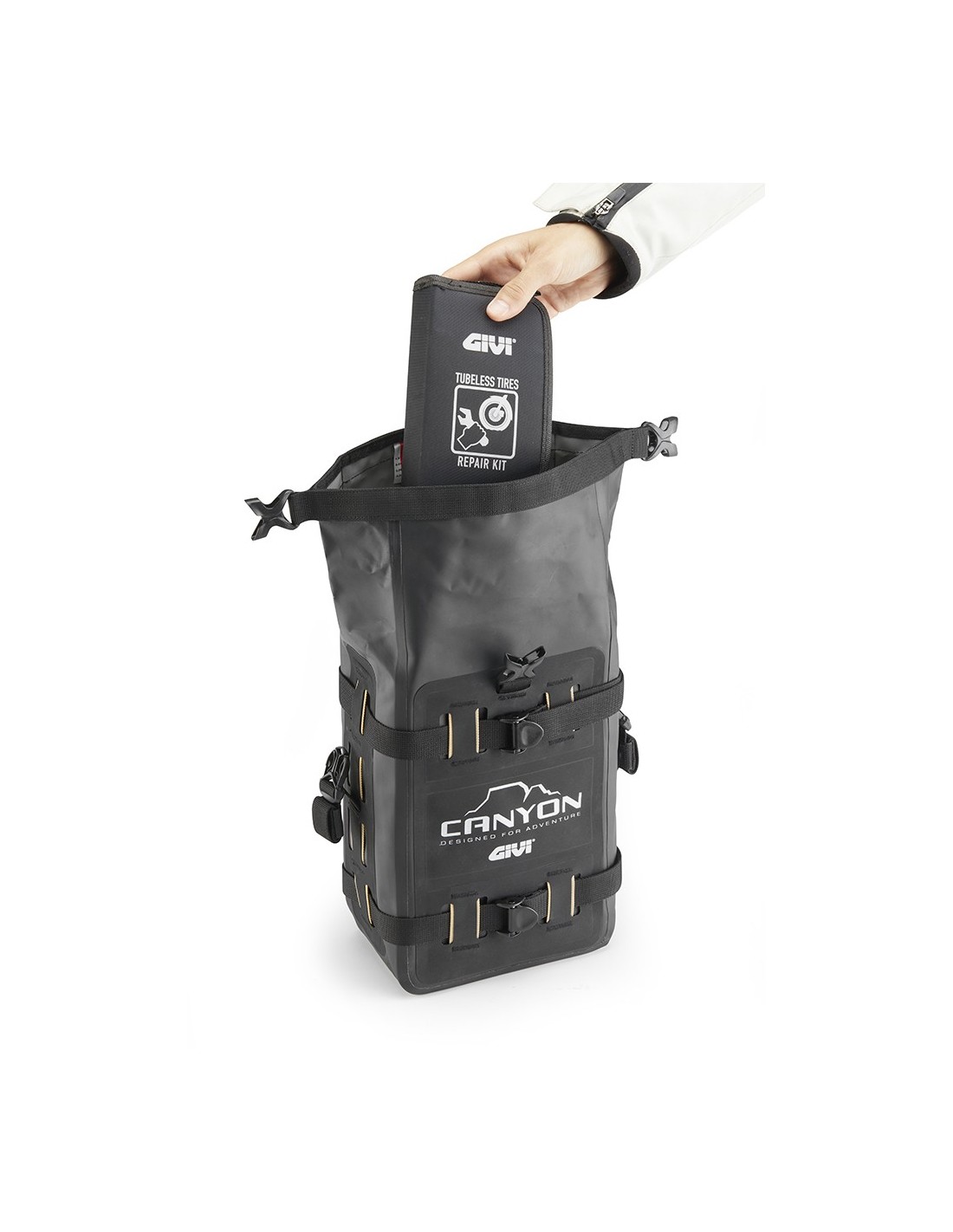 The GRT722B cargo bag can also be installed in combination with other models in the Canyon range, such as the GRT726 cargo bag; This allows you to adjust the luggage layout to suit all types of situations, from short day trips to longer, more demanding motorcycle tours.