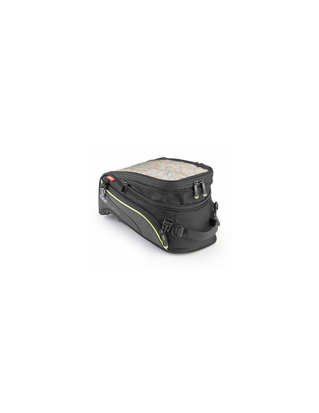 The bag is attached to the dedicated base using 4 quick-release straps, which are placed on the helmet compartment.