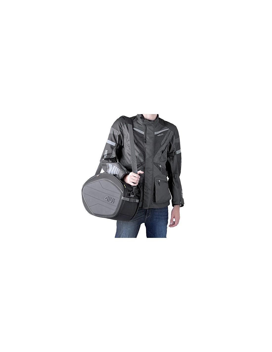 Equipped with a quick-release system using hook-and-loop straps and a central safety strap.