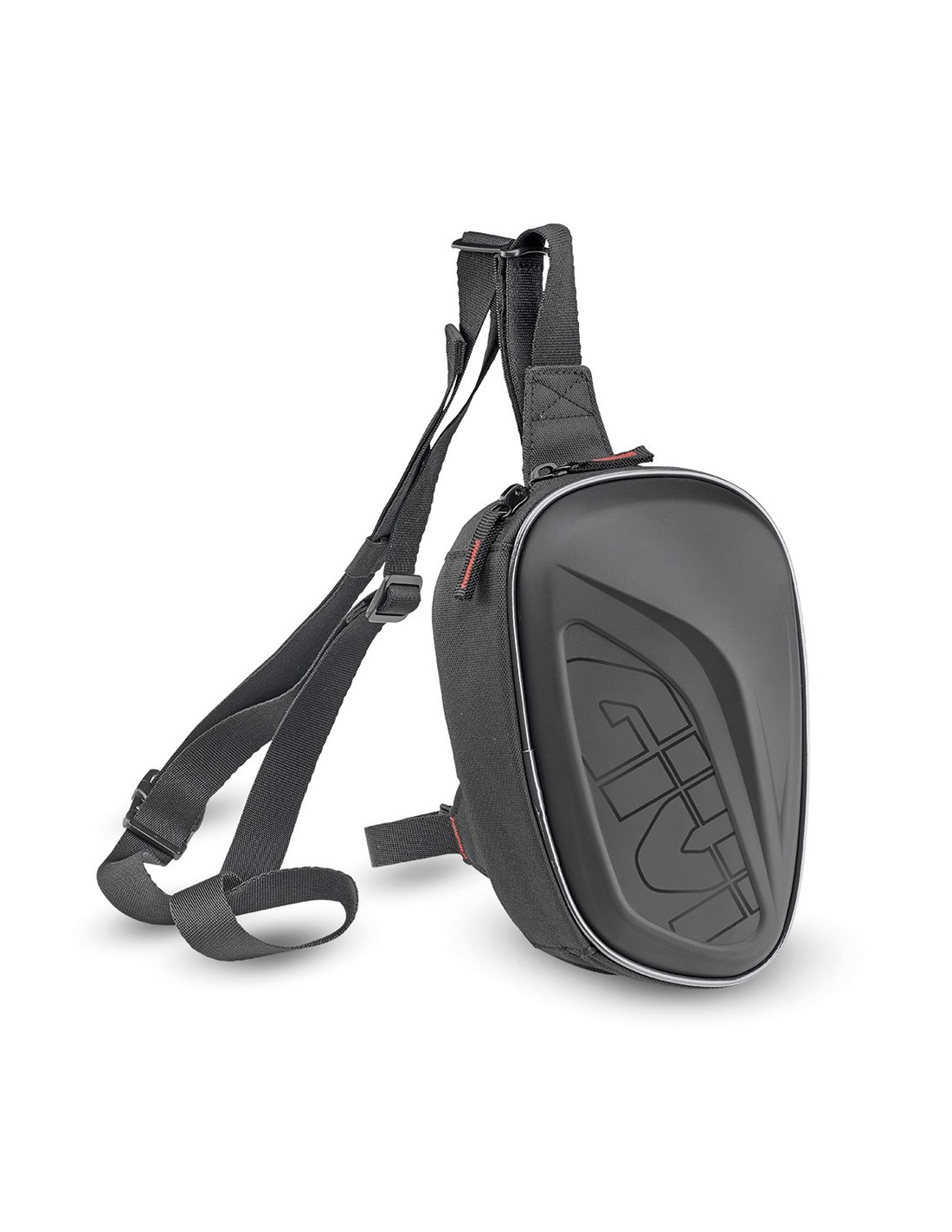 - Adjustable, elastic leg straps with a closure that prevents the bag from rotating while walking
