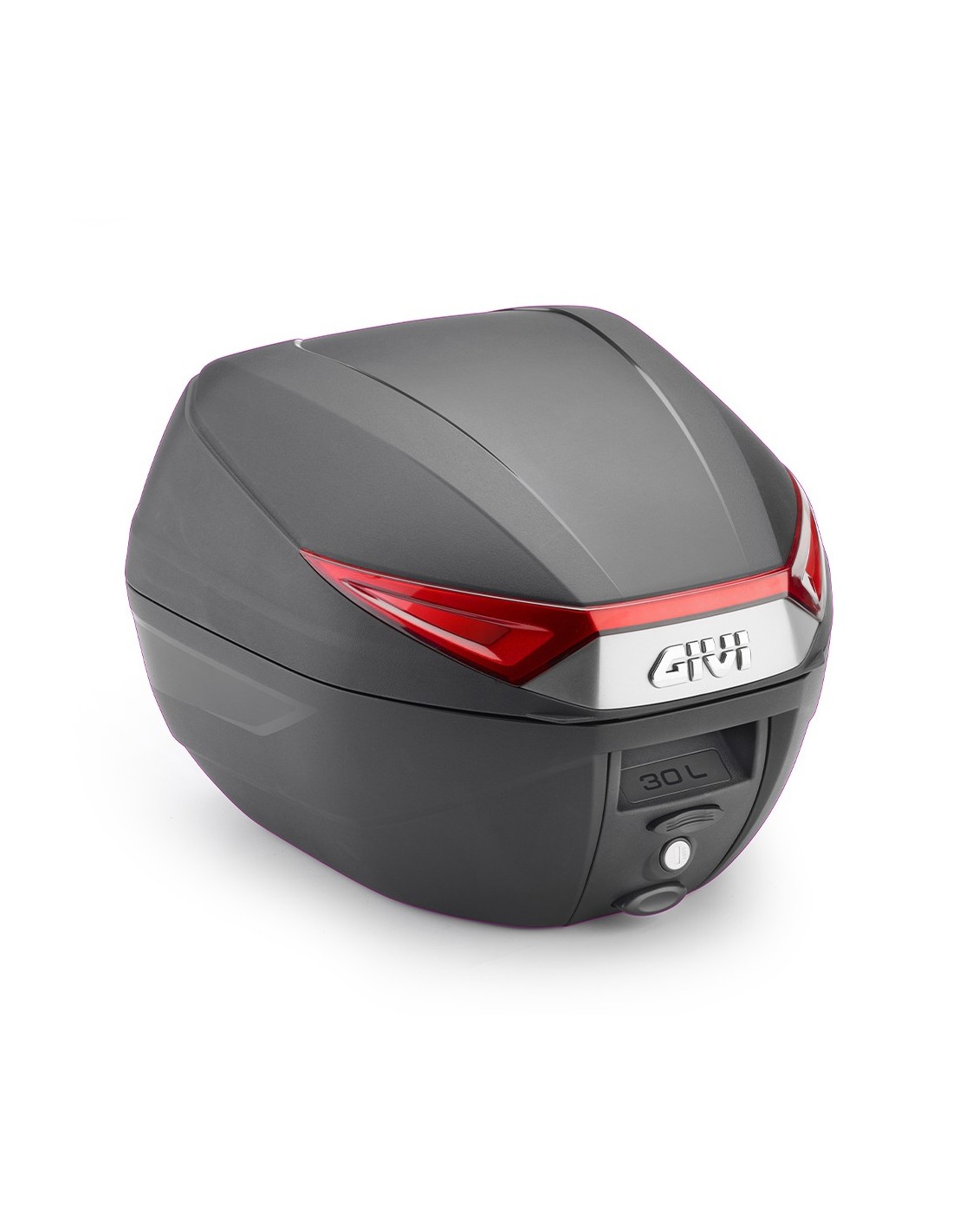 MONOLOCK 30L Top Box (black) with red reflectors. Includes rack and universal mounting kit.