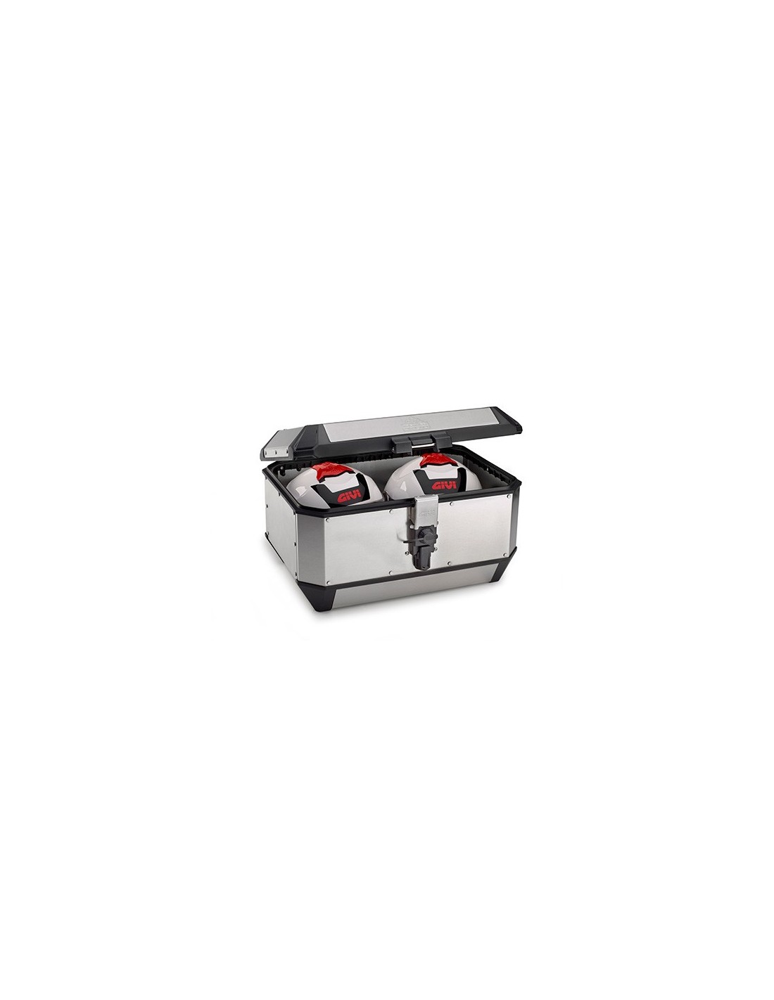 The Trekker Alaska 56L aluminum motorcycle rear case comfortably holds two modular helmets.