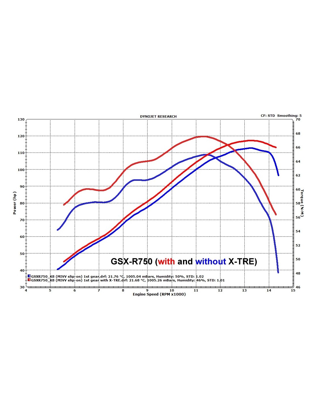 The X-TRE improves engine response with partial and fully open throttle; improves engine torque; It ignores the speed limit on all Suzuki (electronic fuel injection) models of 1000cc or more and adds up to 15 horsepower (for example, in second gear on the B-King).