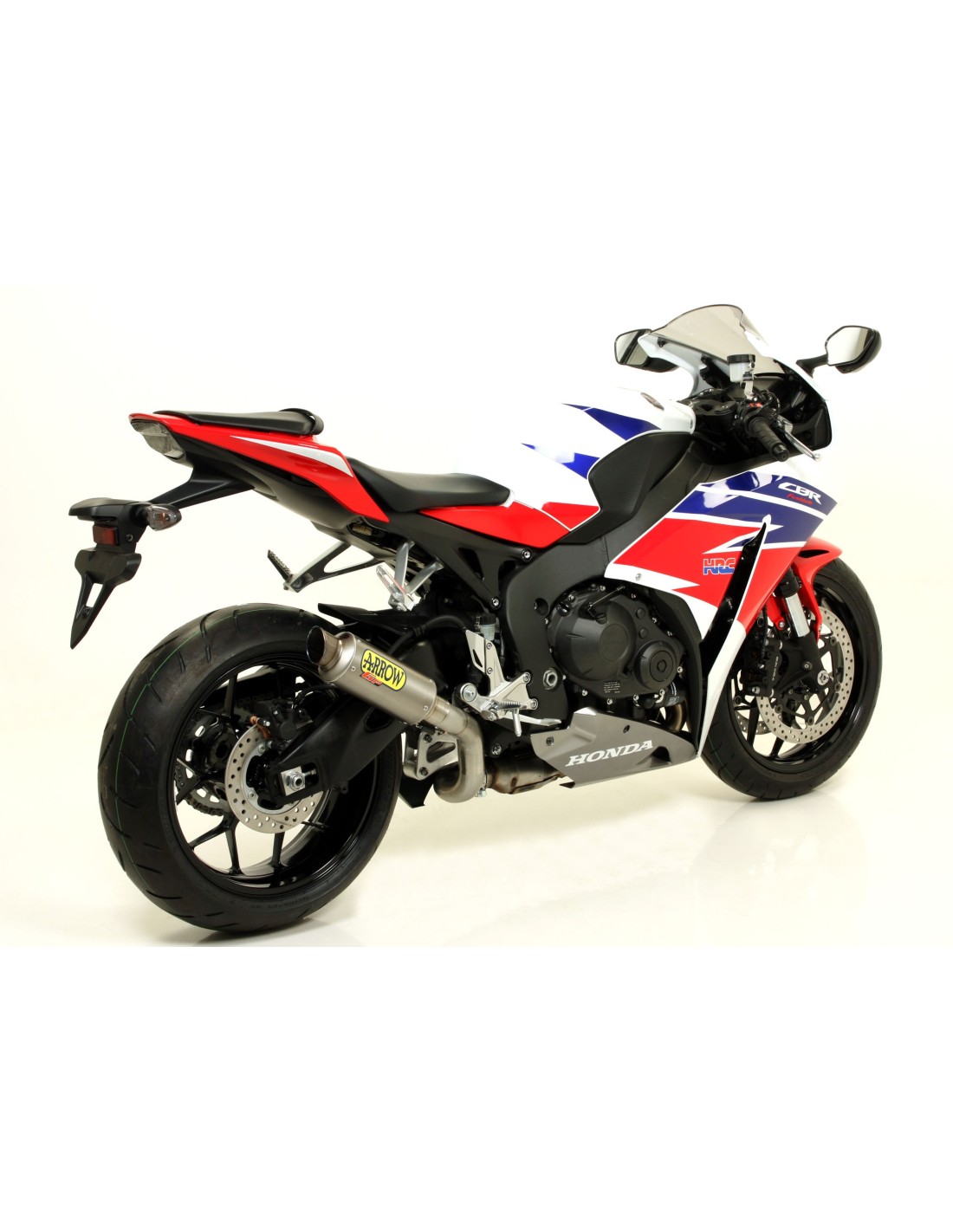The clamp is now available in carbon (replacing the one previously made in titanium alloy) and the new branding designed for Arrow racing exhausts has been introduced (thermo-resistant adhesive for the titanium version and laser marking for the "Dark" steel alloy version).
