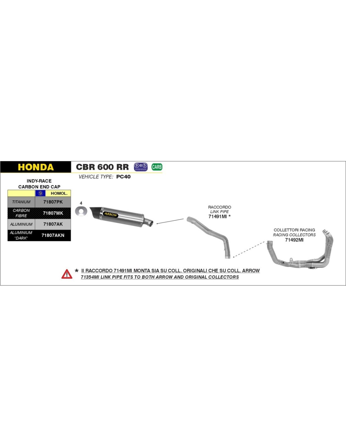 Arrow Indy Race exhaust Carbon pipe Standardised according to European directive 94/24/CE 9