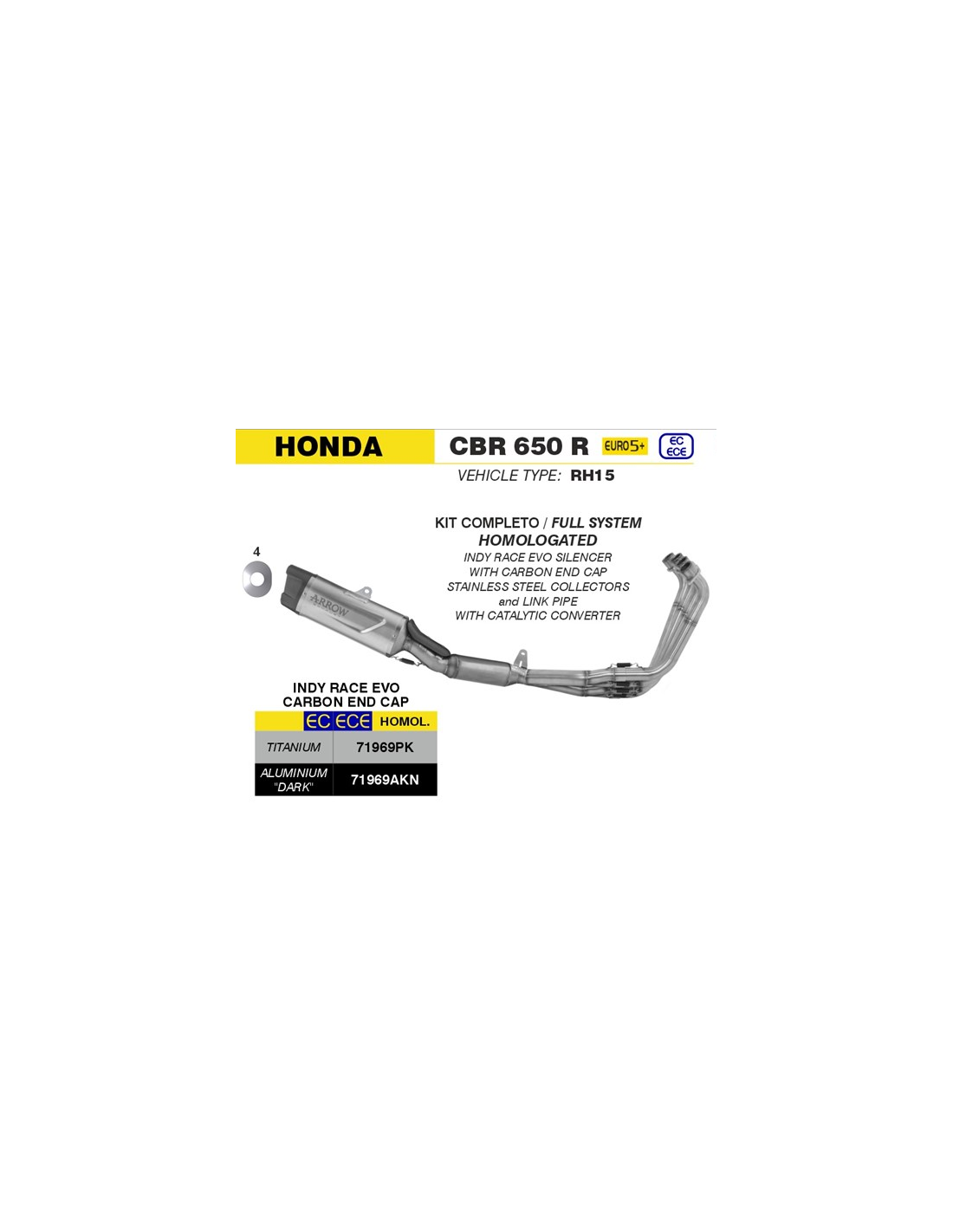 Complete system with titanium or aluminium Indy Race Evo muffler and stainless steel Arrow silencers for HONDA CB650R/ CBR650R 2024+