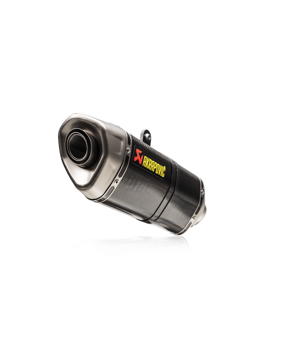 This product is manufactured with a handcrafted carbon fiber outer silencer sleeve and a high-quality stainless steel inner structure and link pipe, all bonded to a high-quality titanium end cap with a new design incorporating prints for a sporty appearance.