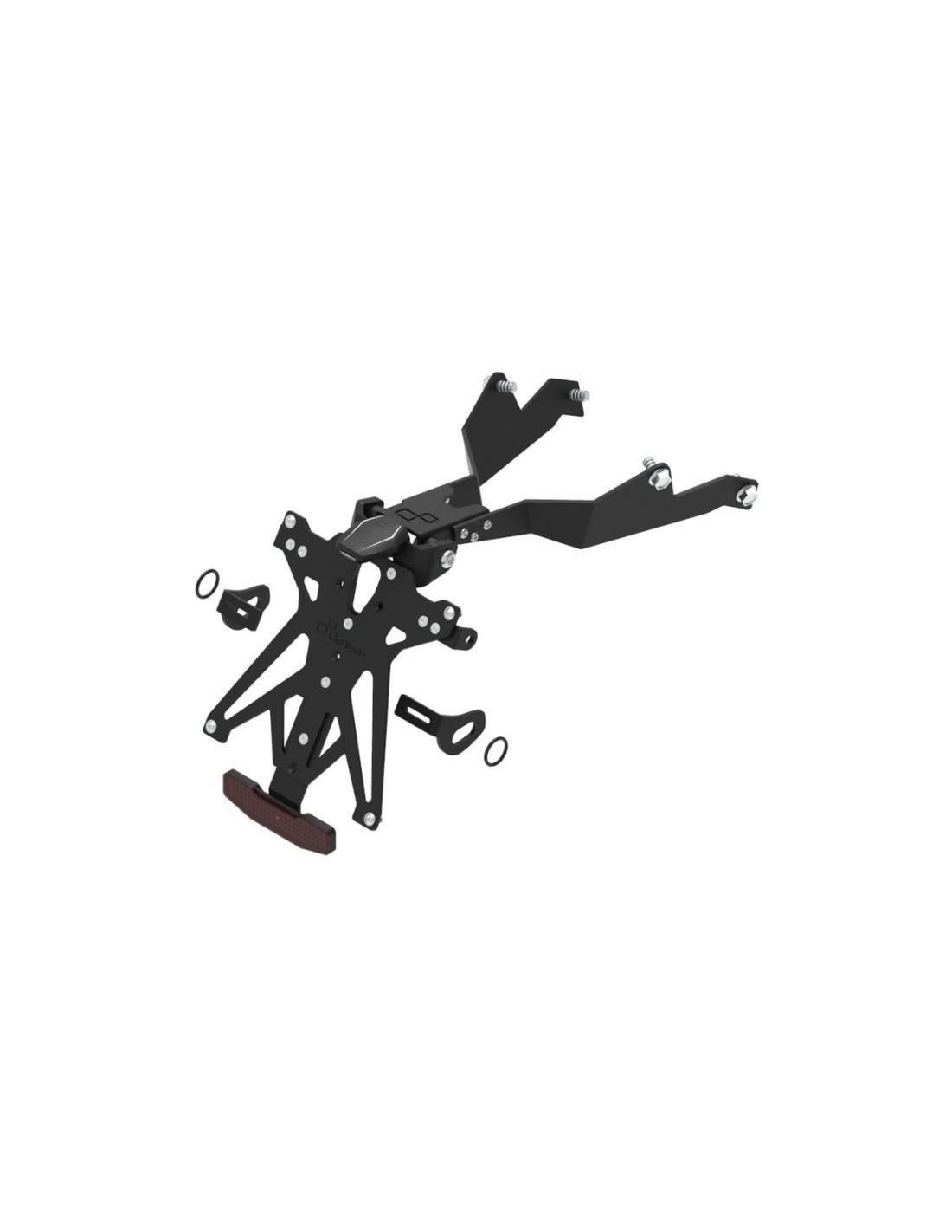 Adjustable License Plate Holder Kit Made Of High Resistance Composite Material, Equipped With Adjustable Supports For Led Turn Signals And Retroreflector. Designed In Compliance With Current Street Rules. Includes Approved License Plate And Catadiotter. Configurable According To The Country Of Destination With A Specific Code