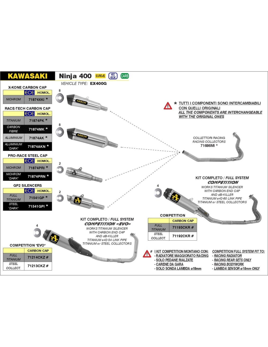 ARROW COMPLETE COMPETITION SYSTEM KAWASAKI NINJA 400