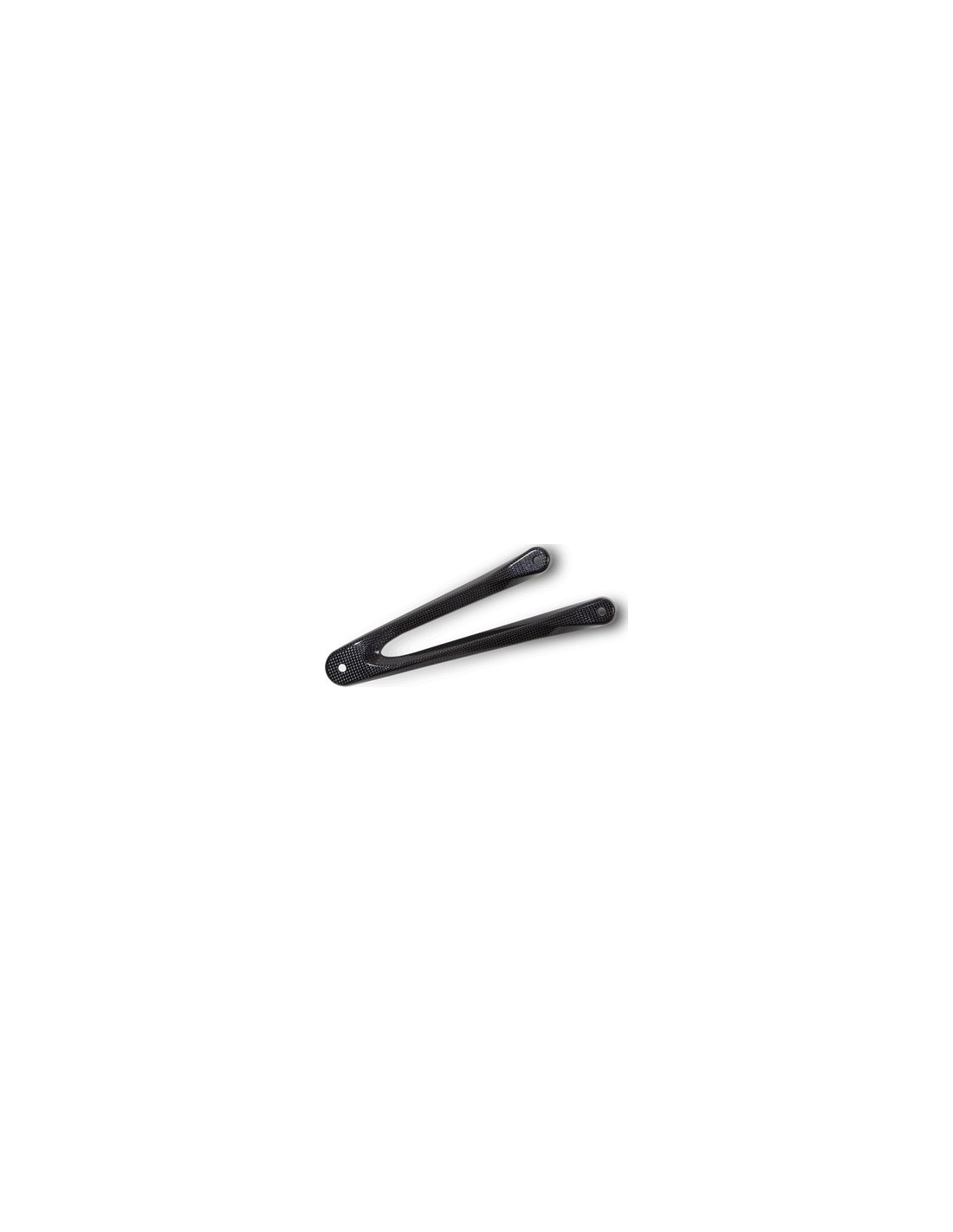 If the passenger footpeg is removed, this optional carbon fiber muffler bracket is required.