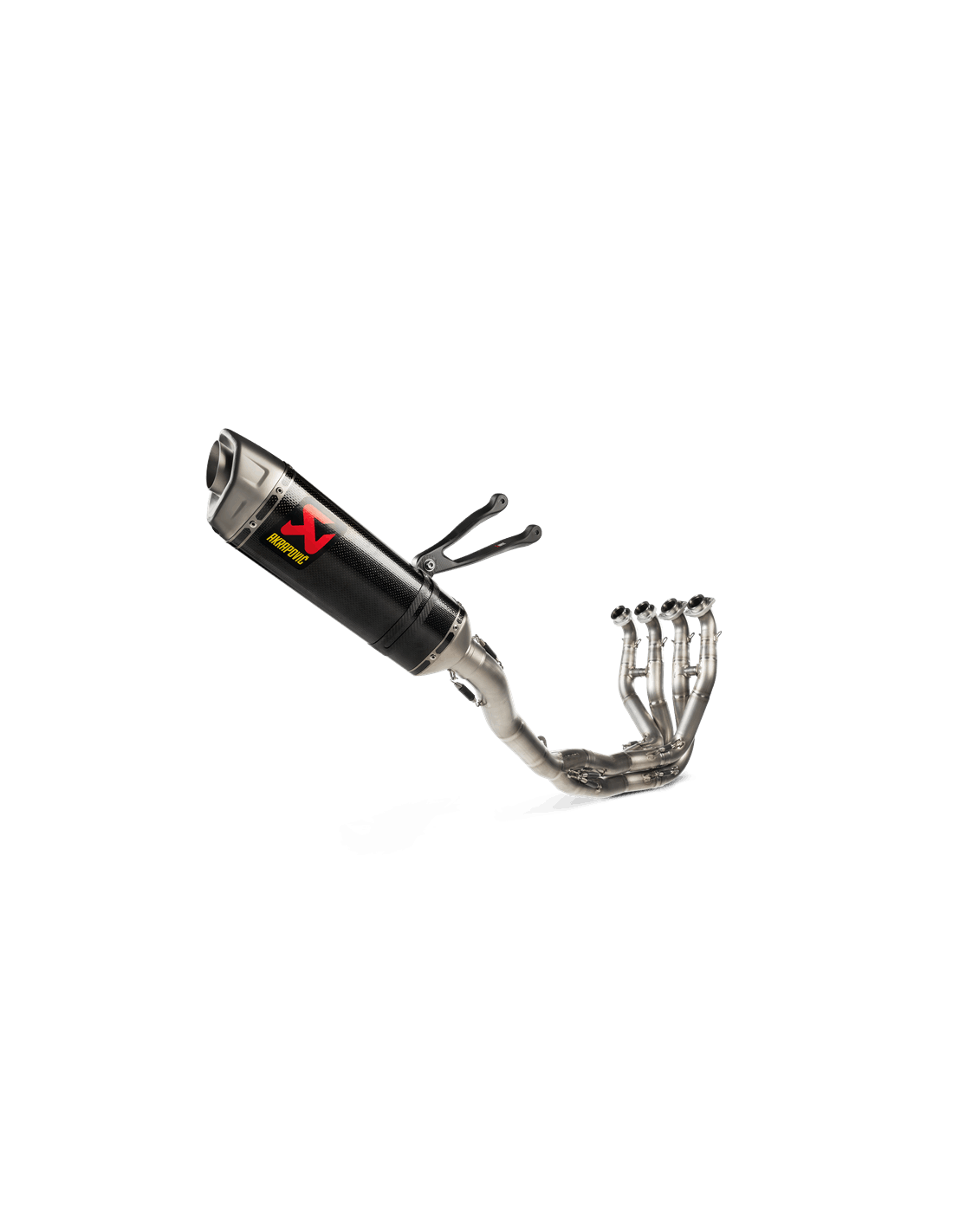 This is a complete stainless-steel exhaust system with a beautifully finished carbon-fibre muffler outer sleeve and high-grade titanium endcap. With the Racing Line, power and torque levels have been increased by an extra 8.2 Kw (11.1 HP) and 13.4 Nm, recorded on Akrapovic's in-house dyno with back-to-back tests of the Kawasaki with a Racing Line (Titanium) exhaust and a Ninja ZX-10RR with a standard stock exhaust system. Coupled with linear delivery right across the entire rev range, it comes with a hexagonal muffler - including titanium inner parts to reduce weight - and a deep sporty sound. An option to add an aluminium muffler bracket is also available to complement the beautiful finish of this system. The bike's ECU must be remapped when the Racing Line system is installed.
