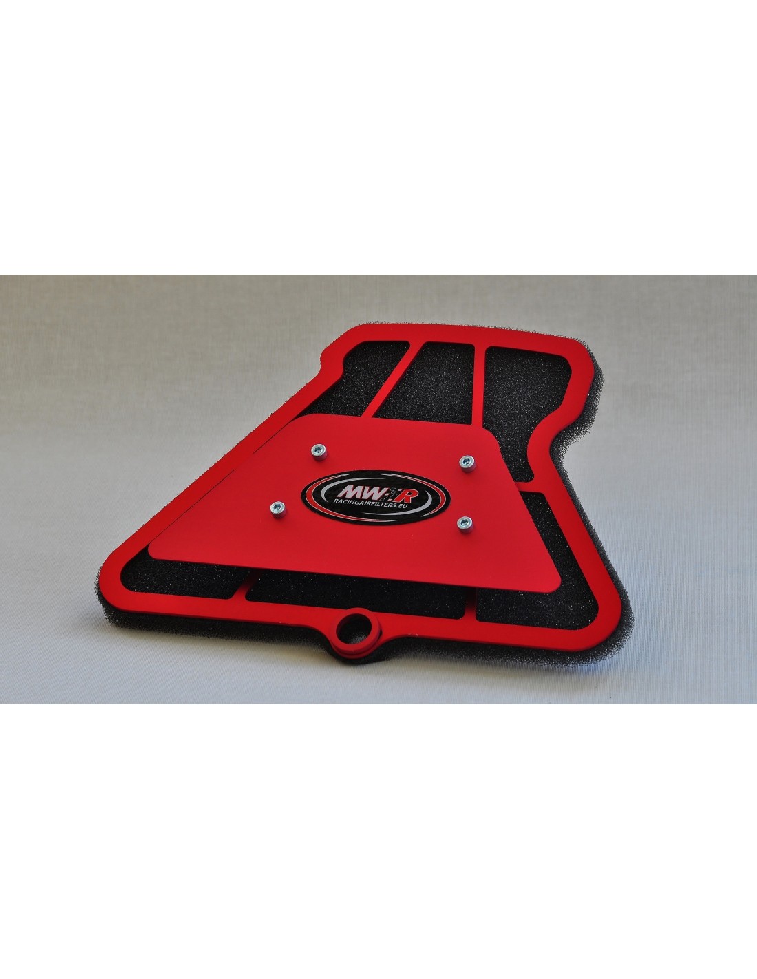 The MWR full racing air filter was developed on the track, developed for racing bikes, NOT for road bikes, not on a dynamometer, but in real life, on the track, professional racing bikes with data loggers. The protection is at the same level as the high performance filter and the “HE” filter, but for a shorter time due to the much more open structure of the foam materials.