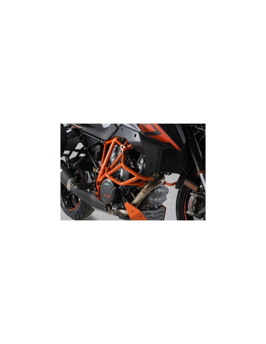 Side engine protections. Orange. KTM 1290 Super Duke R / GT SBL.04.430.10000/O Crash bars Matching the motorcycle model, we offer crash bars made of tubular steel with a corrosion- and weather-resistant powder coating. Surface finishing is carried out in the modern SW-MOTECH factory in the Czech city of Brno. SW-MOTECH engine side protections provide that extra security to the tank, the lining and other components. These accessories, designed specifically for each type of motorcycle, perfectly match the appearance of the vehicle and at the same time offer an optimal permissible lean angle. The mounting elements can be reliably and easily attached to the original fixing points. Sturdy steel frame Corrosion and weather resistant orange powder coating Effective protection of important parts Extremely resistant structure and in harmony with the design of the motorcycle Model-specific construction ensures a precise fit and a strong bond to the chassis Optimum degree of inclination allowed guaranteed Simple mounting by bolting the bar to the available factory anchor points on the frame delivery content 2 x Engine side guards Assembly instructions mounting material Details Material: Steel Surface: powder coated Orange Total weight: ca. 3.8kg Note The shade of the crash bars is slightly different from the original orange of the KTM parts Instructions