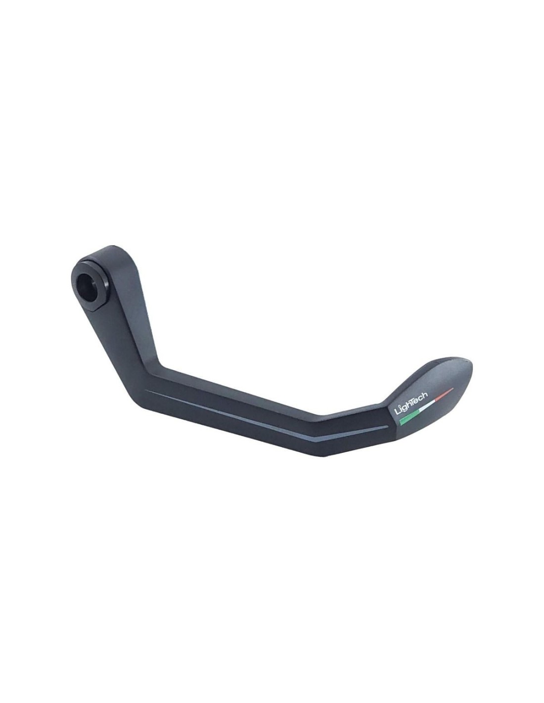 This product is entirely Made in Italy, designed to increase rider safety on the track but also for road use. When braking, it prevents the brake lever from being squeezed and, in the event of contact, the front wheel from being blocked. The peculiarity of this product is the material it is made of: it is a latest generation technical polymer enriched with carbon and graphite, highly resistant, capable not only of replicating, but even exceeding the mechanical resistance qualities of aluminum, maintaining an even lower weight. In fact, the weight of the product is only 39.6 g. For greater customization of the motorbike it is possible to choose the color of the bushes. However, the finishes of the product also give a touch of originality and design to it (the LighTech logo and the three colors of the Italian flag are shown on the final part). It is sold individually. ATTENTION: to be able to apply the lever protection it is absolutely necessary to also order the relevant adapter. The length of the lever is 135 mm. and must be mounted on the right side of the motorcycle.