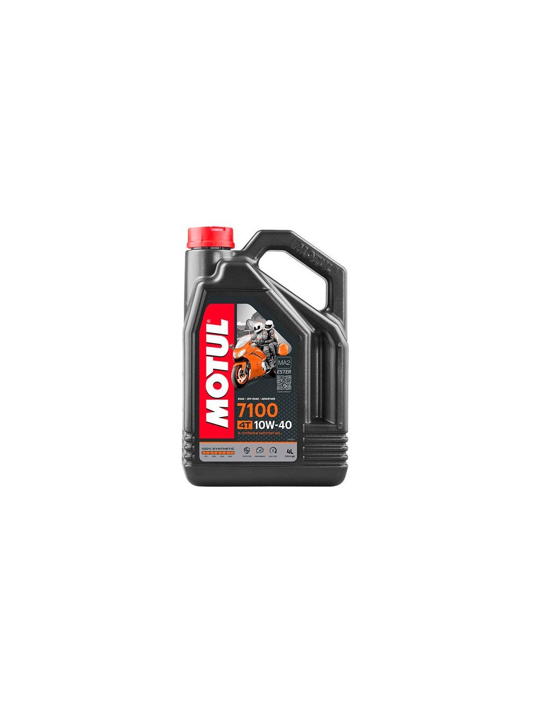 Motul oil 7100 4S 10W40 4L. High performance lubricant. Four-stroke engines. 100% synthetic Made for high peformance motorcycles (sport, road, trail, trial...) with four-stroke engines Ester technology Reduces internal mechanic losses and improves performance 100% synthetic