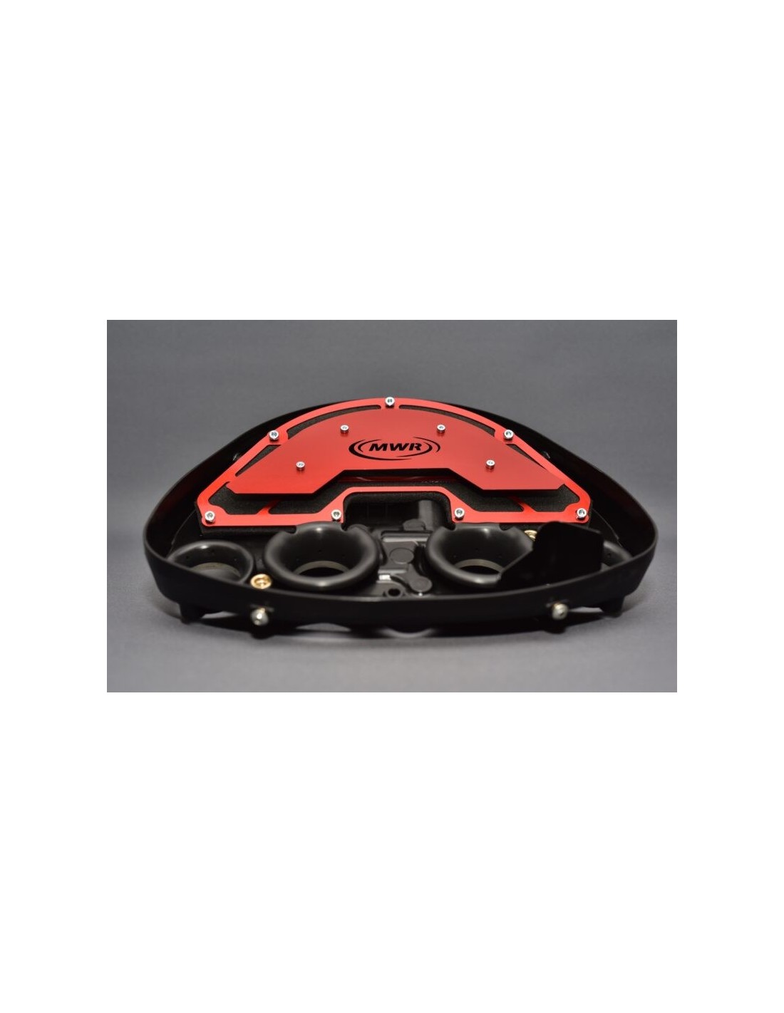 MWR High Efficiency Air Filter for road and racing bikes. The goal of this revolutionary design is to reduce intake noise while increasing power. This design has proven a reduction of up to 8db compared to other sportbike filters.
